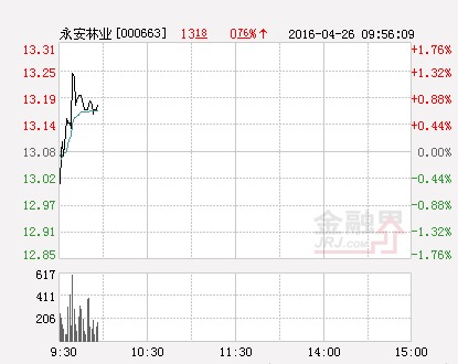 金融界網站10月17訊:周四早盤,受相關利好訊息刺激,林業股表現搶眼,呈現全線上漲的態勢。截止發稿時,永安林業(行情,問診)漲9.96%、福建金森(行情,問診)漲7.41%、吉林森工(行情,問診)漲5.34%、中福實業(行情,問診)漲5.06%。
