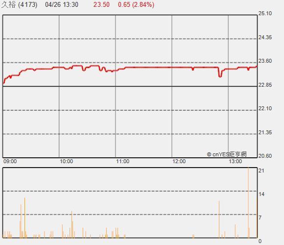久裕2013年上半年度營收7.04億元,稅後純益2593萬元,每股稅後盈餘0.78元,經營成效及營收獲利表現穩健。