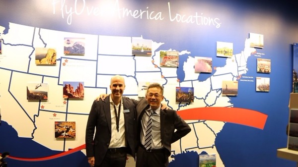 智崴旗下i-Ride飛行劇院正式搶入美國市場,在全美最大購物中心Mall of America,以「FlyOver America」開幕,圖左為總經理歐陽志宏。