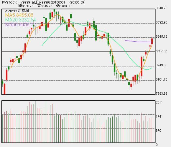 擺脫MSCI權重陰霾,台股今天開低走高,表現勇冠亞股,在金融持續穩盤,資金輪動到生技及IC設計族群,另外跌深反彈股也跟進,指數盤中一度漲逾65點,突破8600點大關,終場上漲61.57點,以8597.16點作收,成交值則為756.58億元。