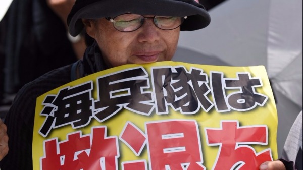 約6.5萬日本民眾6月19日在沖繩縣集會,抗議駐日美軍基地人員涉嫌姦殺一名沖繩女子並拋屍一案。數周內,駐日美軍連爆醜聞,導致民怨沸騰。日本民眾高舉寫著「受夠了」的標語牌,會上還宣讀了受害女性父親的寄語,稱「為了不出現下一個受害者,強烈希望撤走全部的基地。」