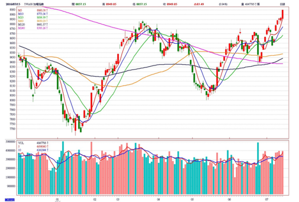 台股盤勢觀察及策略鉅亨台北資料中心2016-07-18 09:01由於英國脫歐事件是國際重大事件,也是符合多頭回檔快速的原則,而後來的走勢都超越脫歐的高點,代表現階段外資其實看多趨勢,不過最近發生南海危機下,這波行情只有看外資表演,當外資連續大賣台股時,投資朋友就小心謹慎。雖然短線基本面台股乏善可陳,但是美國經濟溫和復甦、國內景氣訊號燈轉黃藍燈,重要是全球熱錢逃竄,大量資金將尋找收益較佳的資產停泊,台灣股市將是外資不錯的高股息殖利率的選擇標的。 注意族群 強恆強 文章標籤更多鉅亨講座看更多講座公告上一篇台股盤中-外資熱錢派對 現金股息2500億元再同歡 攻上9000點下一篇〈名師解盤〉台股9000點直通車 散户買站票 醞釀軋空行情0