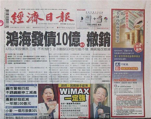 ◆經濟日報:鴻海發債10億美元 撤銷