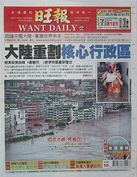 台灣主要報紙頭條要聞一覽( 7月20日)