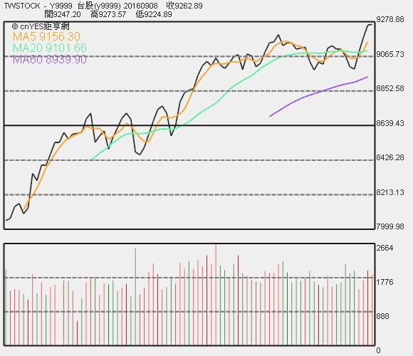 德國股市大漲,激勵今天開盤的日韓與港股開高往上,台股也一掃紅盤收黑的陰霾,一早護盤就踩油門,由金融領軍,跳空收復盤中高價股由股王大立光領軍,率先衝上漲停,營建、汽車敲邊鼓,同時成交量能也明顯升溫,加權指數收盤時,雖然未能全部吞掉昨天的黑棒,但也大漲101.17點,以7053.38點作收,成交值放大至636.54億元。