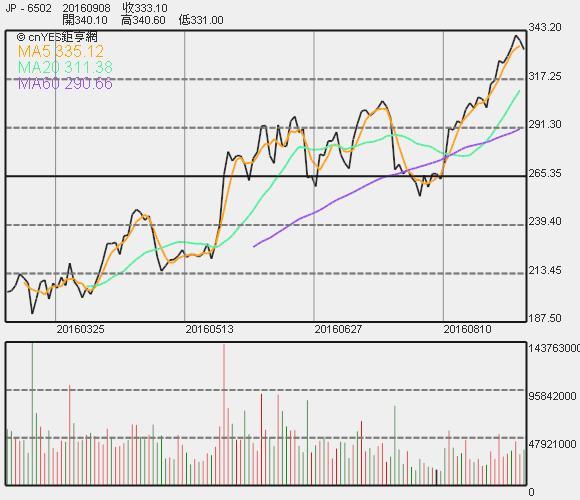 東芝股價收盤連續線圖