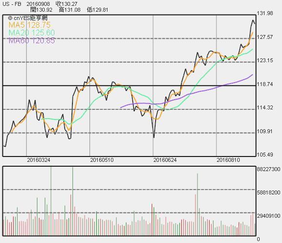 Facebook股價收盤連續線圖