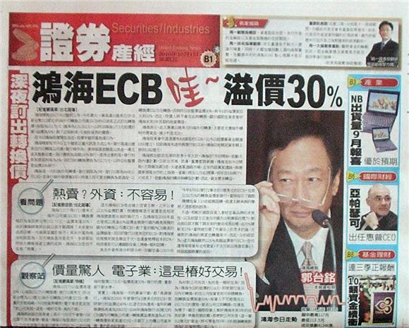 █深夜訂出轉換價 鴻海ECB溢價30%