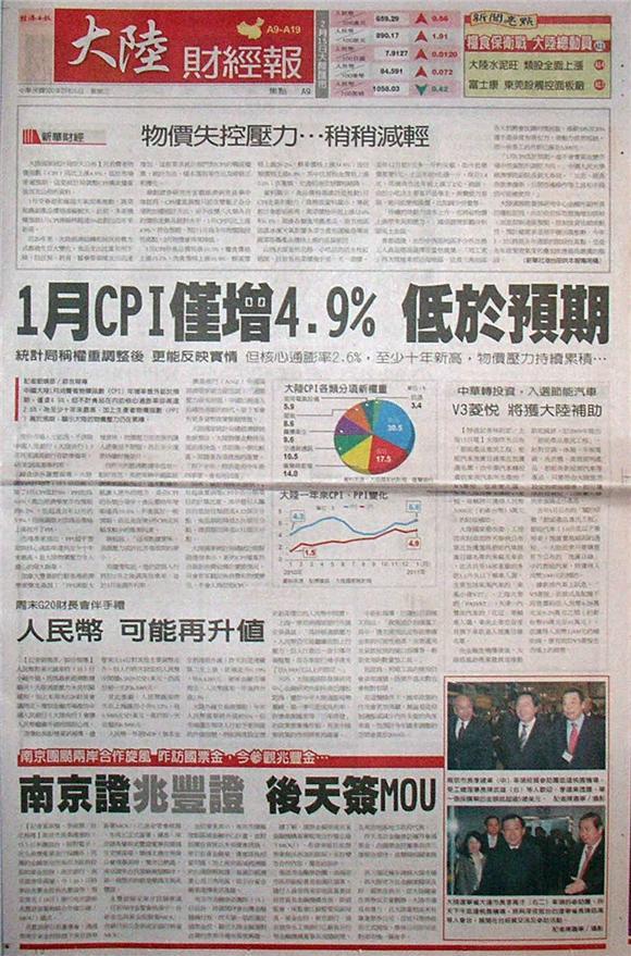 ■大陸1月CPI僅增4.9% 低於預期