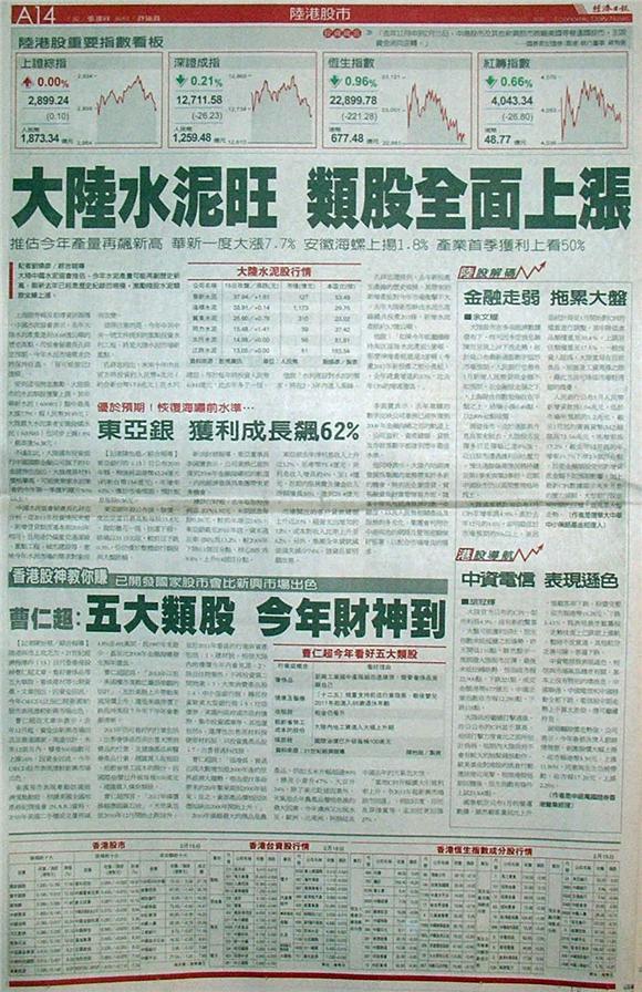 ■大陸水泥旺 類股全面上漲