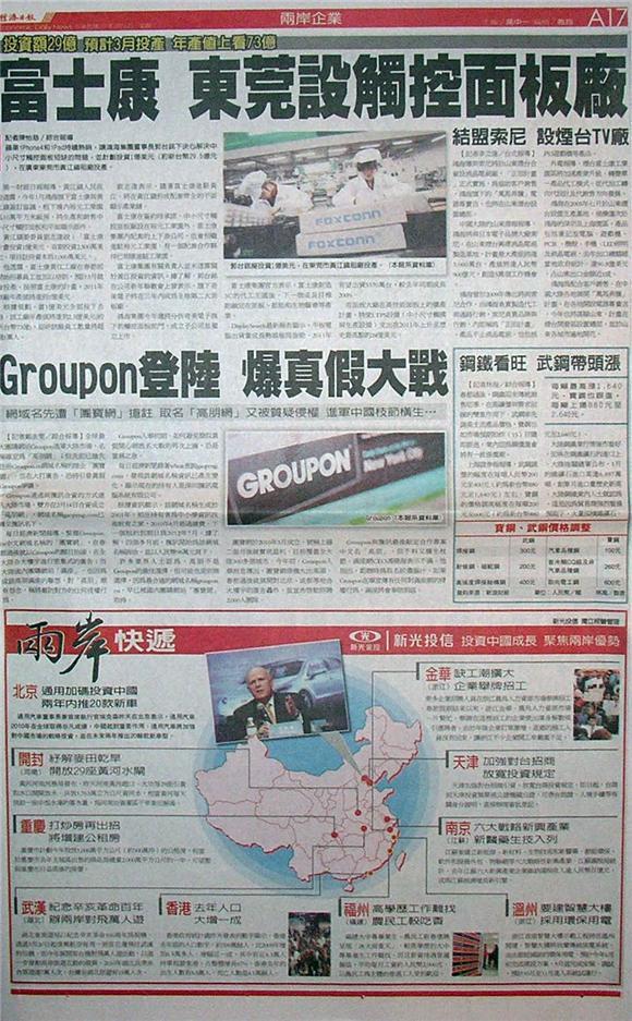 蘋果iPhone4和iPad持續熱銷,讓鴻海集團董事長郭台銘下決心解決中小尺寸觸控面板短缺的問題,並計劃投資1億美元(約新台幣29.5億元),在廣東東莞市黃江鎮租廠投產。