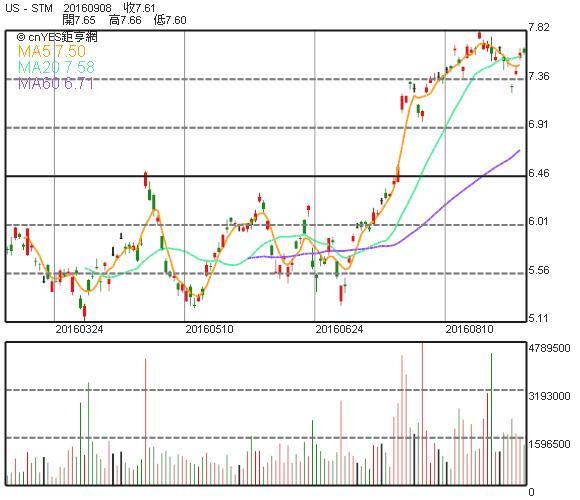 意法半導體紐約股價K線圖