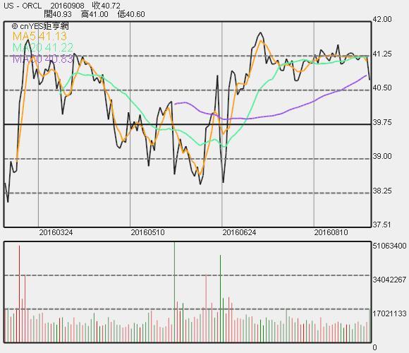甲骨文股價收盤連續線圖
