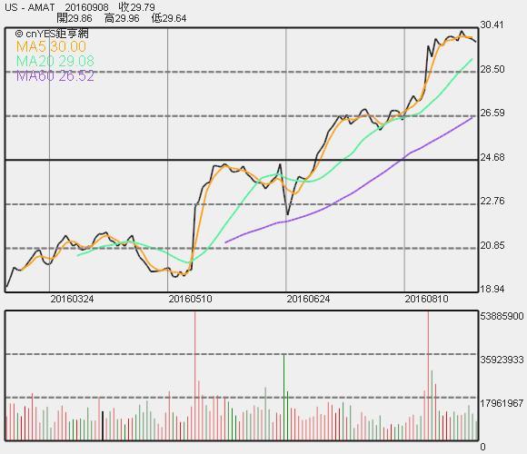 應材盤後股價先應聲上漲 1.43%,之後又回跌下滑 0.67%,報 10.41 美元。