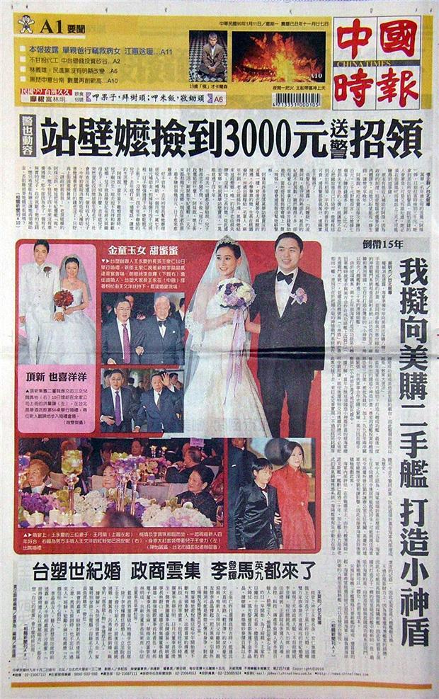 台塑集團第三代長孫王泉仁昨與首都客運千金李晶晶結婚,這不但是斥資1600萬元的世紀婚禮,也是台塑集團已故創辦人王永慶遺產官司和解後,王家三房親屬首次齊聚一堂,展現家族大和解,王家可謂雙喜臨門。