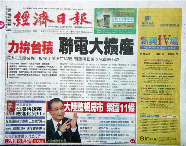 台灣主要報紙頭條要聞一覽 (1月11日)