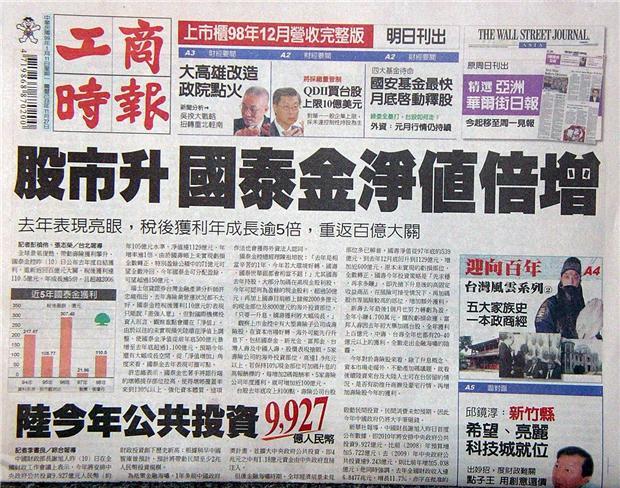 ◆工商時報:股市升國泰金淨值倍增
