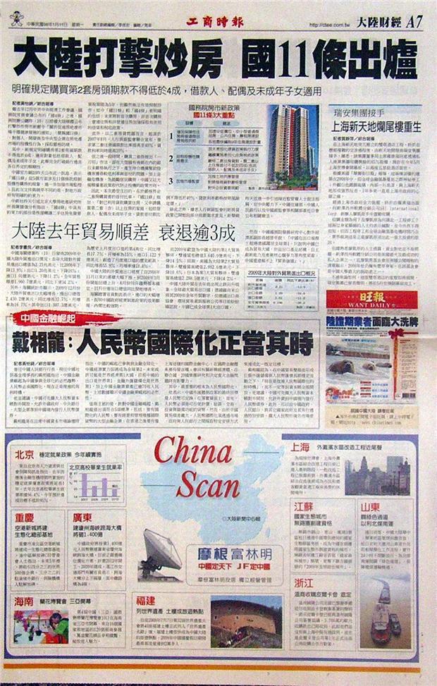 面對部份大城市房產快速增溫,導致房價暴漲,大陸國務院再次發布平穩房市通知的「國十一條」,要求合理引導住房消費,抑制投機購房,對已利用貸款購買住房、又申請購買第二套以上住房家庭(包括借款人、配偶及未成年子女),貸款首付款比例不得低於四○%,貸款利率嚴格按照風險定價。
