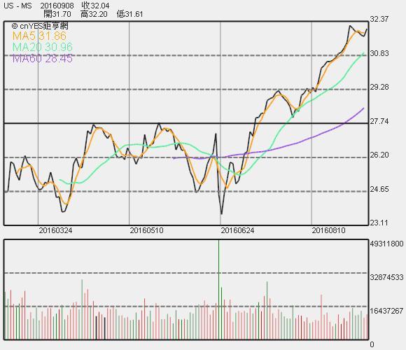 摩根士丹利股價收盤連續線圖