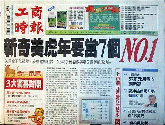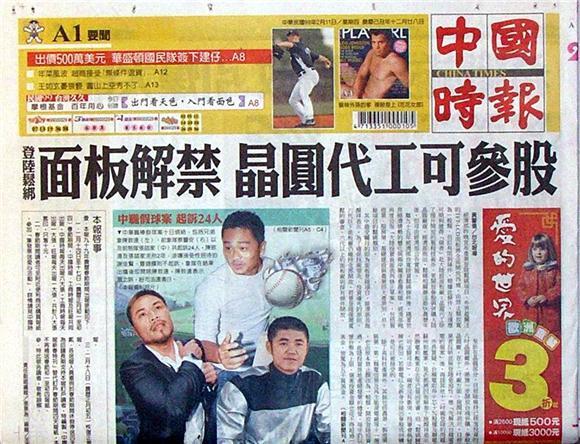 ◆中國時報:登陸鬆綁 面板解禁晶圓代工可參股
