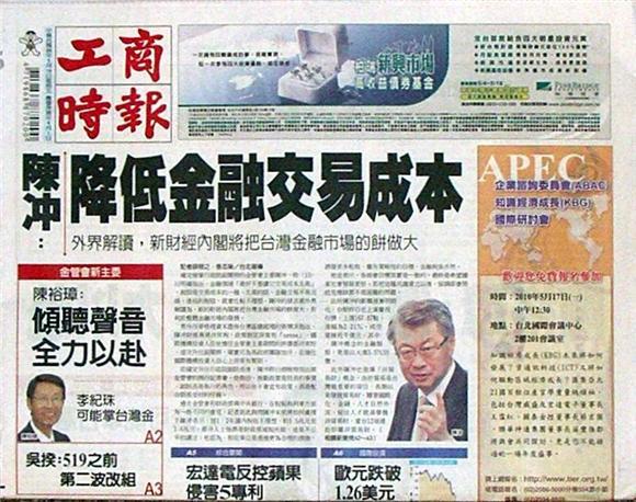 確定接掌行政院副閣揆的金管會主委陳沖,昨(13)日明確指出,金融領域「最好不要讓它交易成本太高」,稅即是交易成本的一種,太高的話,金融交易不易活絡,後段的稅收,就會比較不理想。陳?的發言被外界解讀為,新的財經內閣將把台灣金融市場的餅做大,有利於整體金融市場的發展。