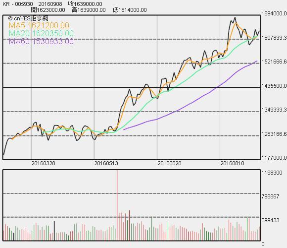 三星股價收盤連續線圖