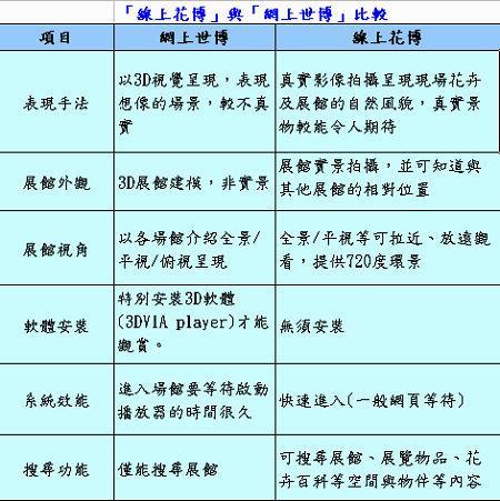 「線上花博」與「網上世博」比較 (圖表: 花博媒體中心)