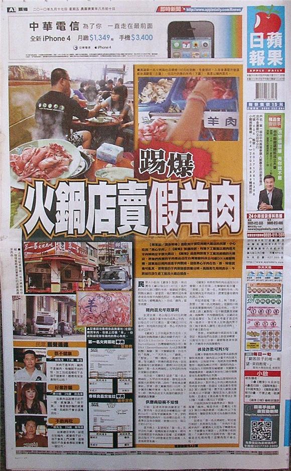 ◆蘋果日報:踢爆 火鍋店賣假羊肉
