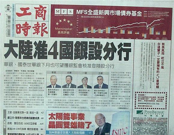 大陸銀監會宣布,已批准台灣土銀、一銀、合庫和彰銀首批4家台資銀行在大陸籌建分行。金管會表示,希望台資銀行在大陸能站穩腳步,逐步推展業務,做好風險控管及財務穩健。