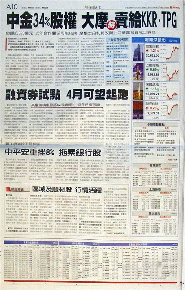 消息指出,摩根士丹利將以約10億美元(320億元),把所持有的中國國際金融公司(中金公司)34.3%股份,出售給兩家美國私募基金KKR和TPG;不過,這宗交易尚待大陸國務院副總理王岐山點頭。