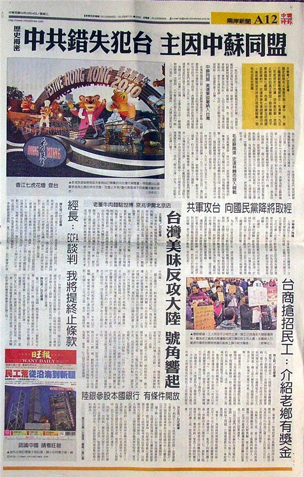 台灣主要報紙大陸版要聞標題一覽 (2月24日)