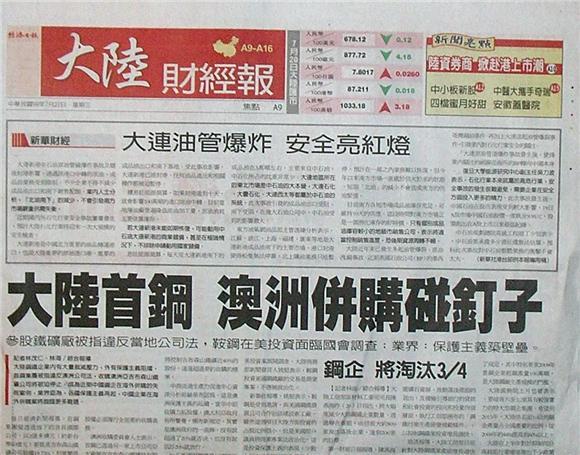 ■大陸首鋼 澳洲併購碰釘子