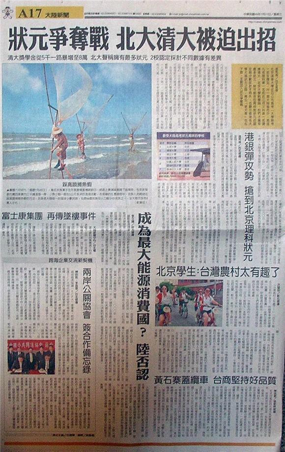 北京清華大學近日公布高考(大學聯考)招生情況,卅一個大陸省市中,高達九成理科第一名和近三成文科第一名選擇清大;北京大學則聲稱,他們才擁有最多狀元。除可能存在兩校對狀元的認定與分數採計不同外,也顯示香港各大學大搶狀元之際,兩位「老大哥」也拉下臉,主動加入狀元爭奪戰。