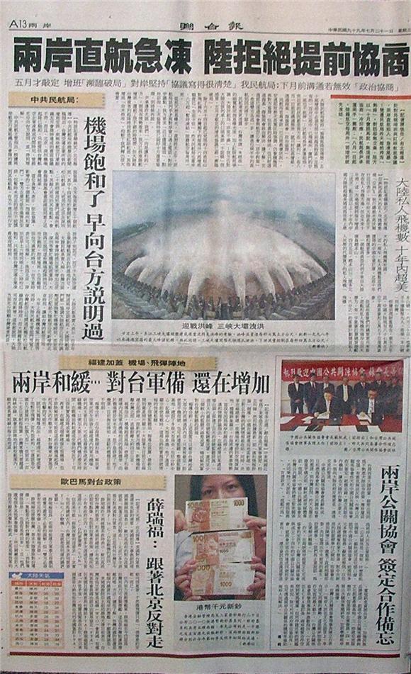 台灣主要報紙大陸版要聞標題一覽 (7月21日)