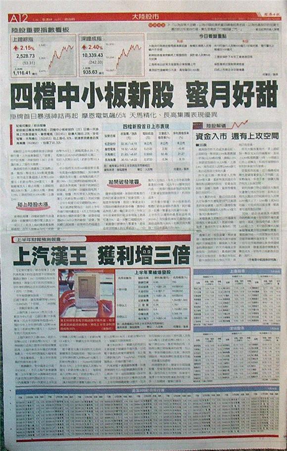 新股首日暴漲神話再起,四檔中小板新股昨(20)日第一天掛牌上市表現衝天,摩恩電氣(002451)股價大漲65.20%,排名冠軍,天馬精化(002453)也上漲45.92%,就連表現最差的長高集團(002452),也漲了16.31%。