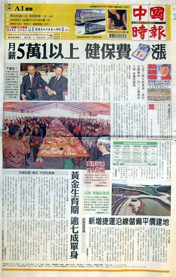 ◆中國時報:月薪5萬1以上 健保費2010年4月1日漲