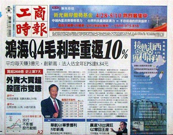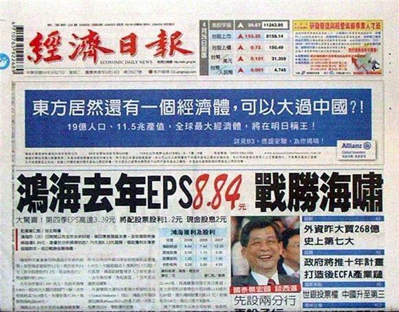 ◆經濟日報:鴻海去年EPS 8.84元 戰勝海嘯