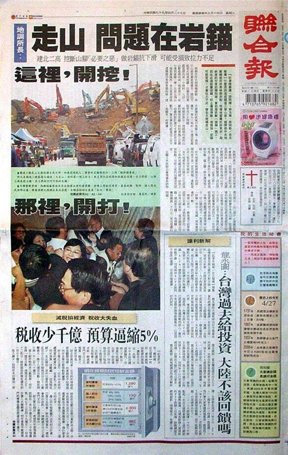 ◆蘋果日報:國道山崩 埋3車4人 祈禱奇蹟