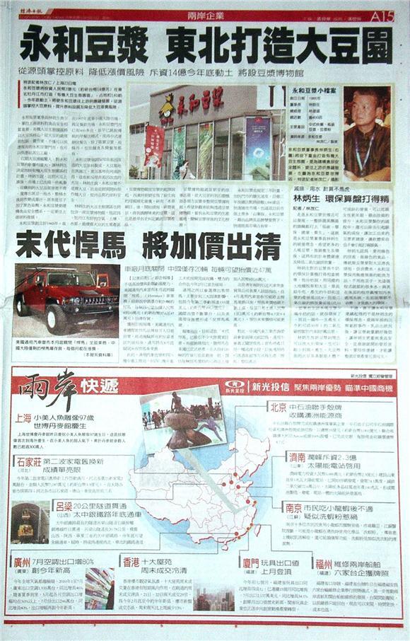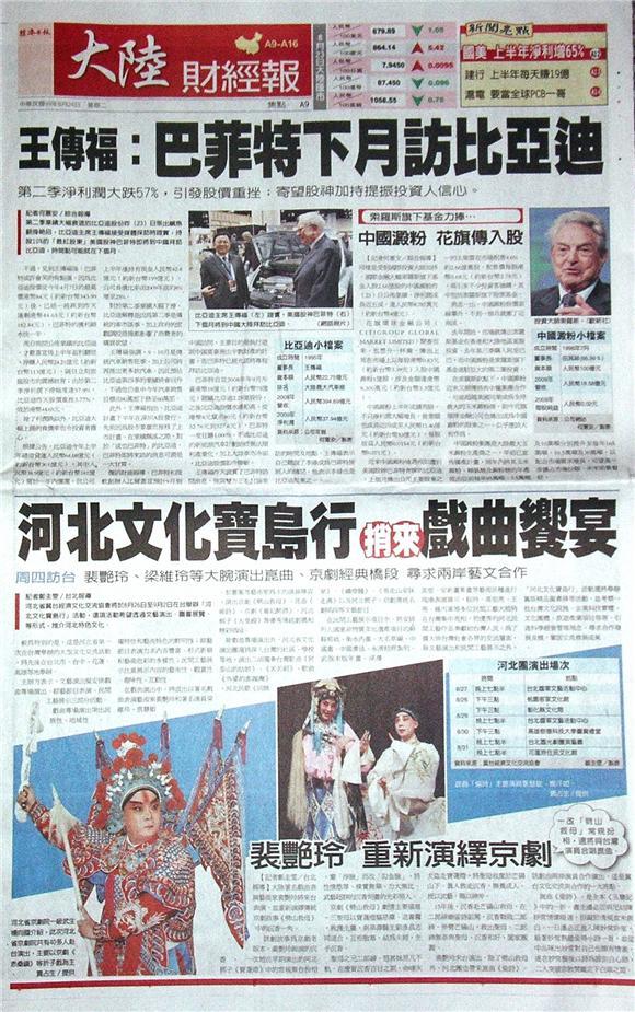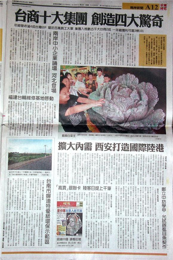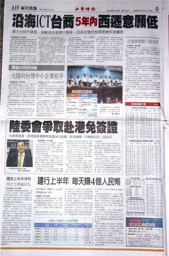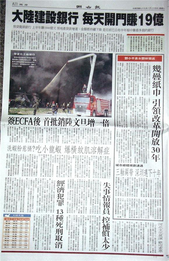 台灣主要報紙大陸版要聞標題一覽 (8月24日)