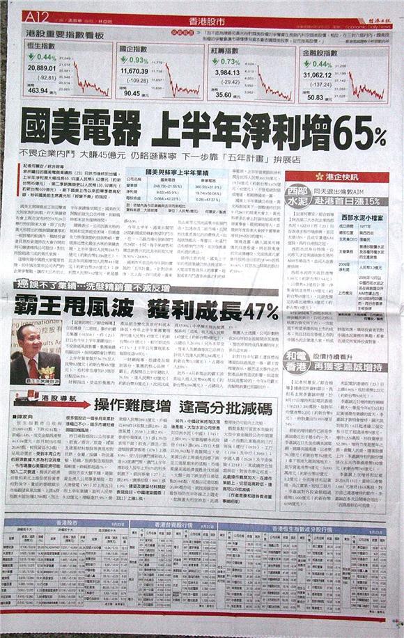 ■國美上半年淨利 同比大增逾65%
