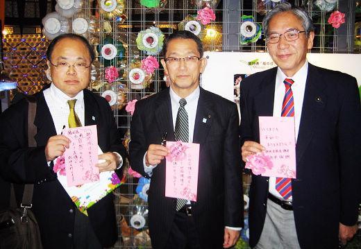 靜岡縣副知事岩-洋一郎(中)、文化觀光部長出野勉(左)、靜岡縣議員佐原徹朗(右)