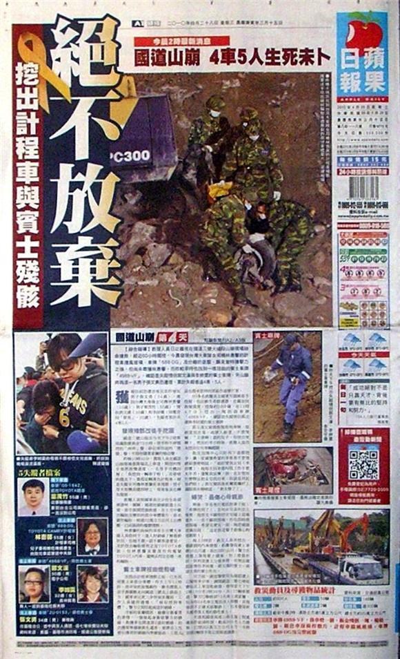 ◆蘋果日報:絕不放棄 挖出計程車與賓士殘骸