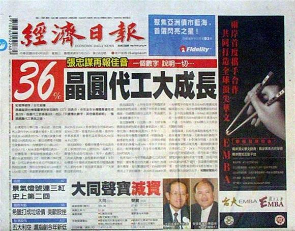◆經濟日報:張忠謀再報佳音 晶圓代工成長36%