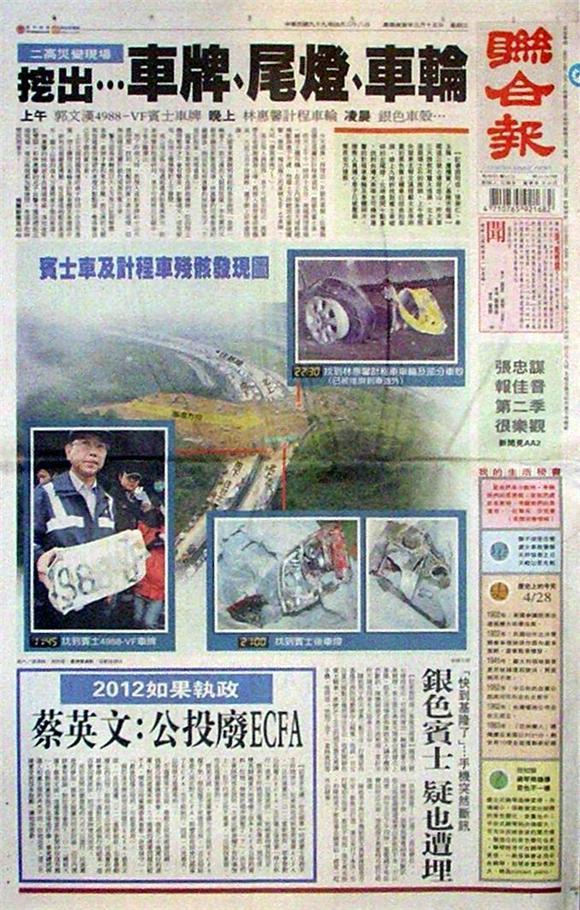 ◆聯合報:二高災變現場 挖出車牌、尾燈、車輪