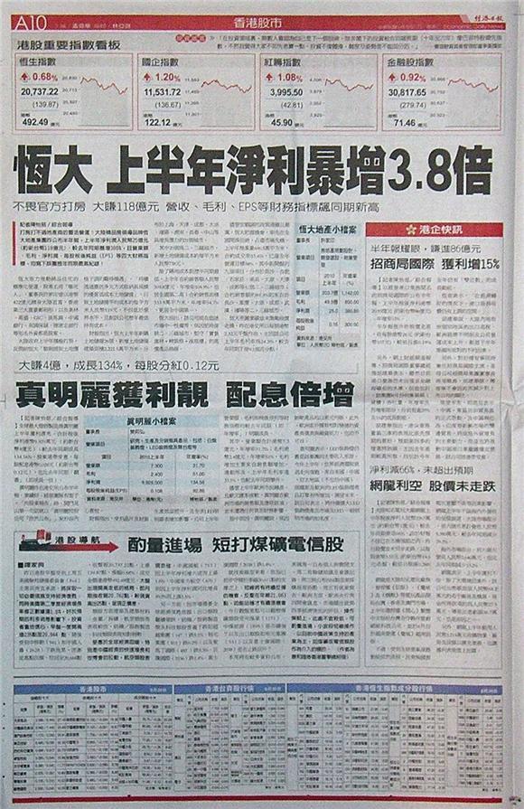 ■恆大 上半年淨利暴增3.8倍