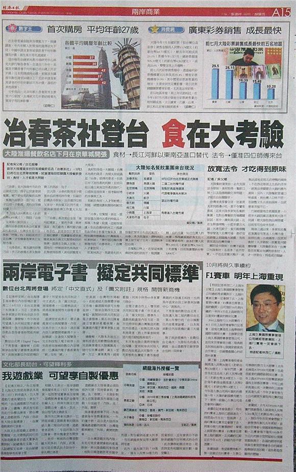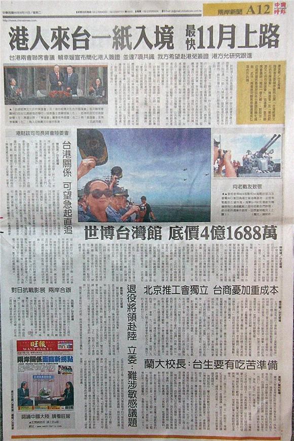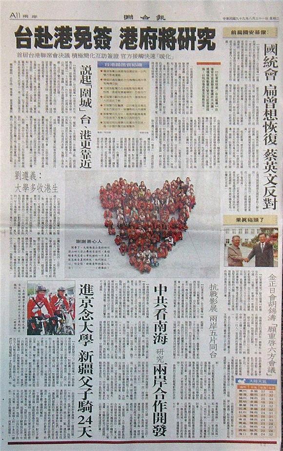 台灣主要報紙大陸版要聞標題一覽 (8月31日)