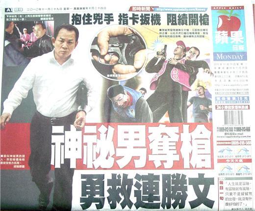 ◆蘋果日報:神祕男奪槍 勇救連勝文
