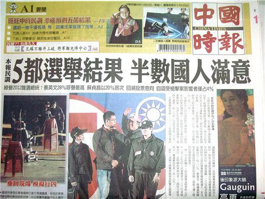 ◆中國時報:本報民調 5都選舉結果 半數國人滿意