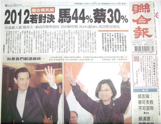 ◆聯合報:2012若對決 馬44%蔡30%