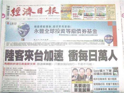 ◆經濟日報:陸客來台加速 衝每日萬人